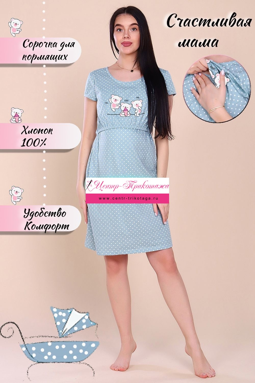 Сорочка женская с рукавом для беременных и кормящих. Данная модель выполнена из трикотажного полотна кулирка (хлопок 100%). Полочка состоит из двух частей, верхняя кокетка с принтом и поднимается так, чтобы было удобно и без усилий покормить малыша. Отличная модель для дома и сна