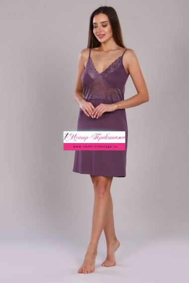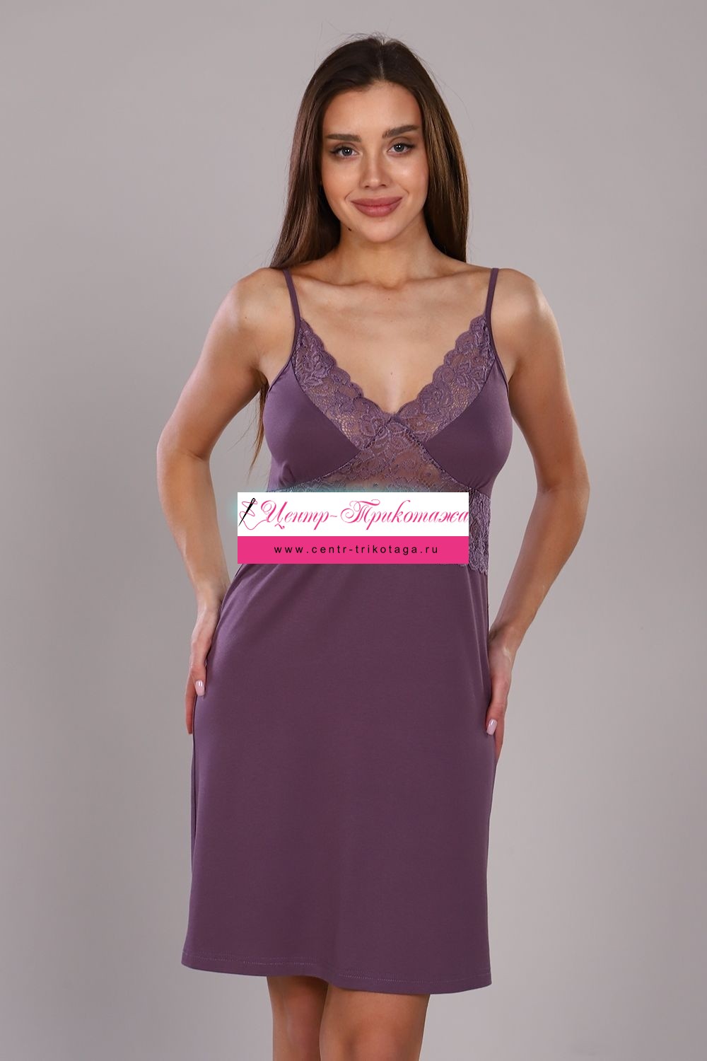 Сорочка на бретелях из мягкой вискозы, с эластичным кружевом. Натуральные материалы в составе позволят вашей коже дышать, что гарантирует вам комфортный сон.