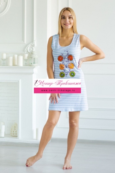 Сорочка женская майка из кулирки Fruits&bikes голубой №А-05176