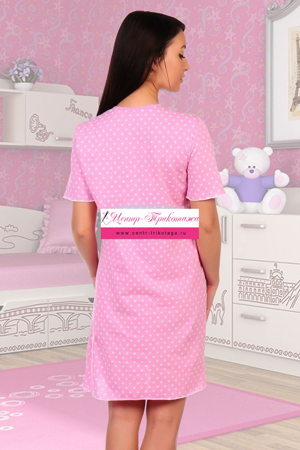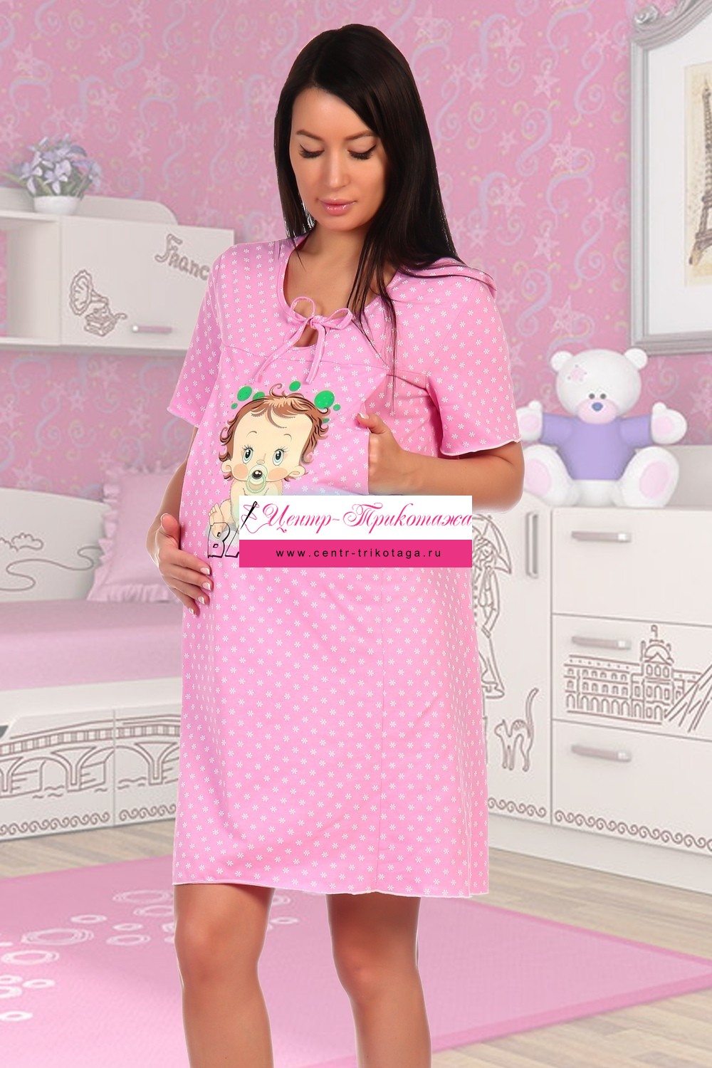 Ночная сорочка для кормящих мам. Ткань кулирка, по фону набивка-звездочки. Полочка с принтом.