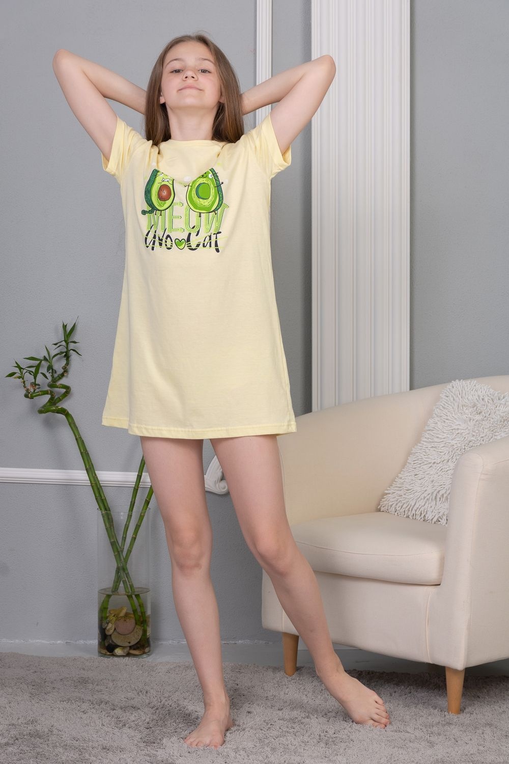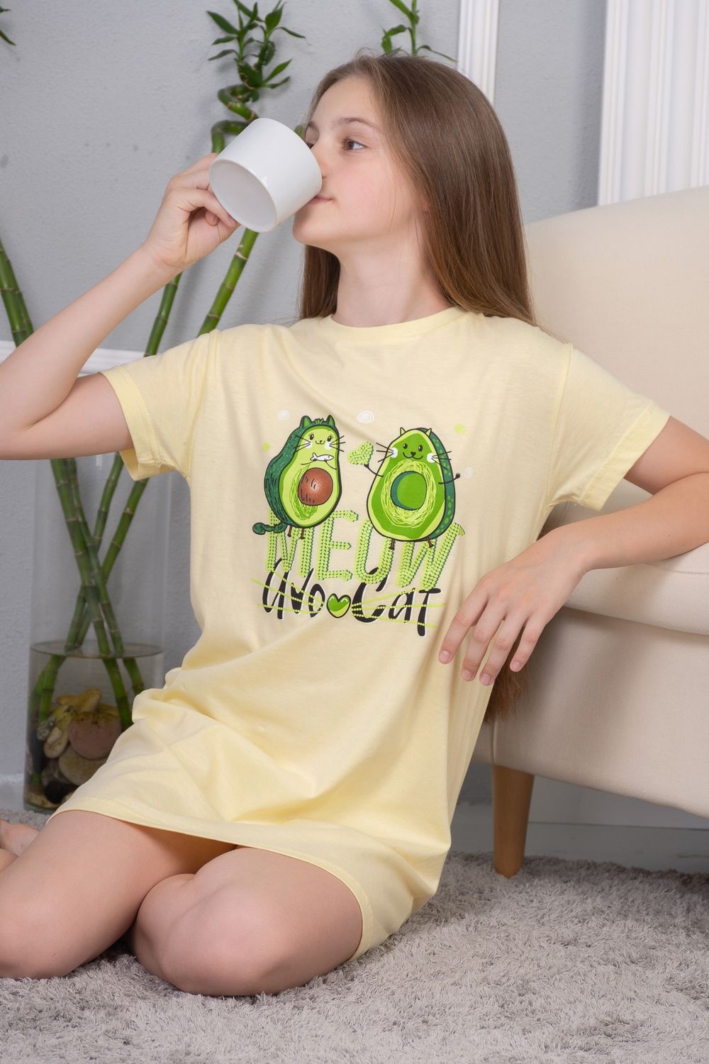 Ночная сорочка для подростков, из 100% хлопка, с модным принтом Авокэт . Можно использовать как домашнюю тунику. Свободный крой со спущенной линией плеча. На фото представлена модель рост 158 см, 38 размер.