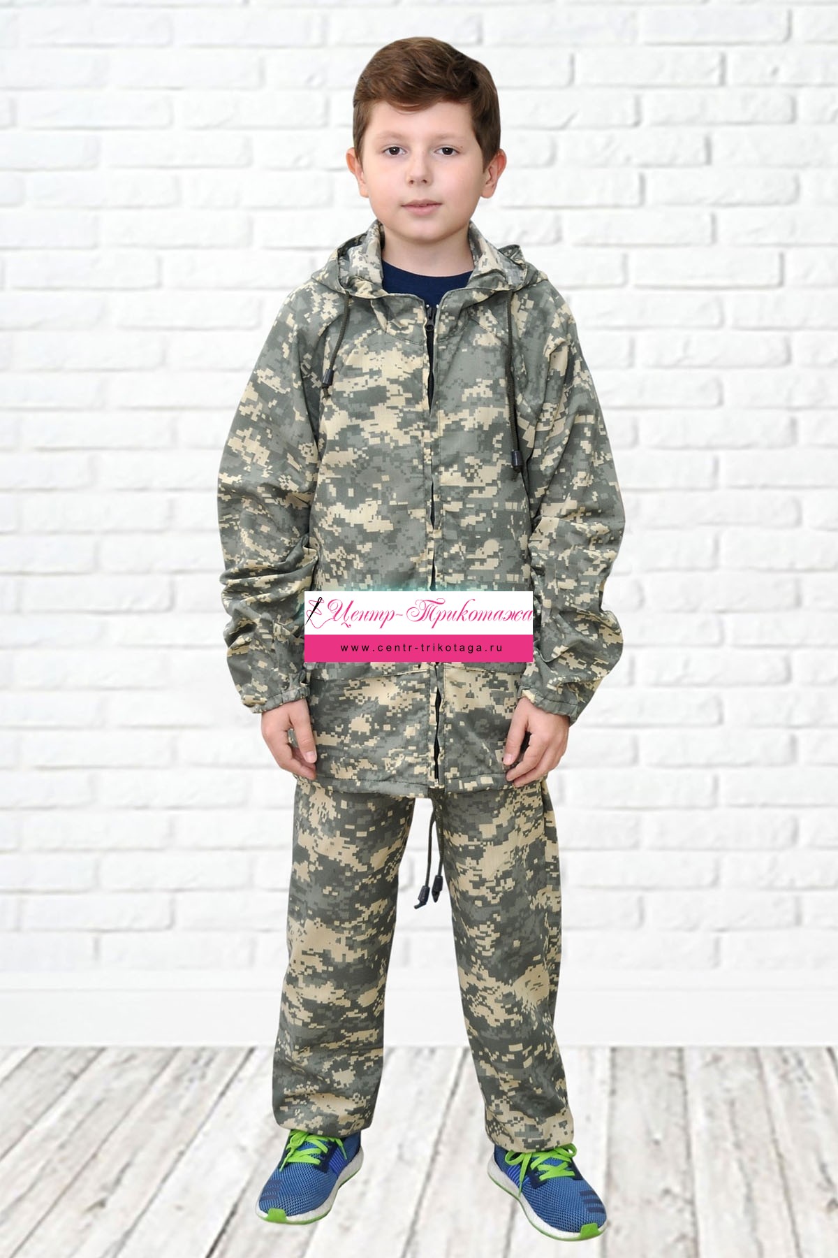Костюм детский "Комбат" состоит из куртки и брюк. Куртка удлиненная с утяжкой по низу, рукав реглан. Капюшон цельнокроеный с регулировкой объема. Под влагоотводящей планкой в передней части куртки расположены два прорезных кармана. Брюки прямые с поясом на резинке, оснащены двумя прорезными карманами. Низ брюк на резинке. Для удобства эксплуатации костюм компактно упакован в сумочку. Костюм детский предназначен для активного отдыха.