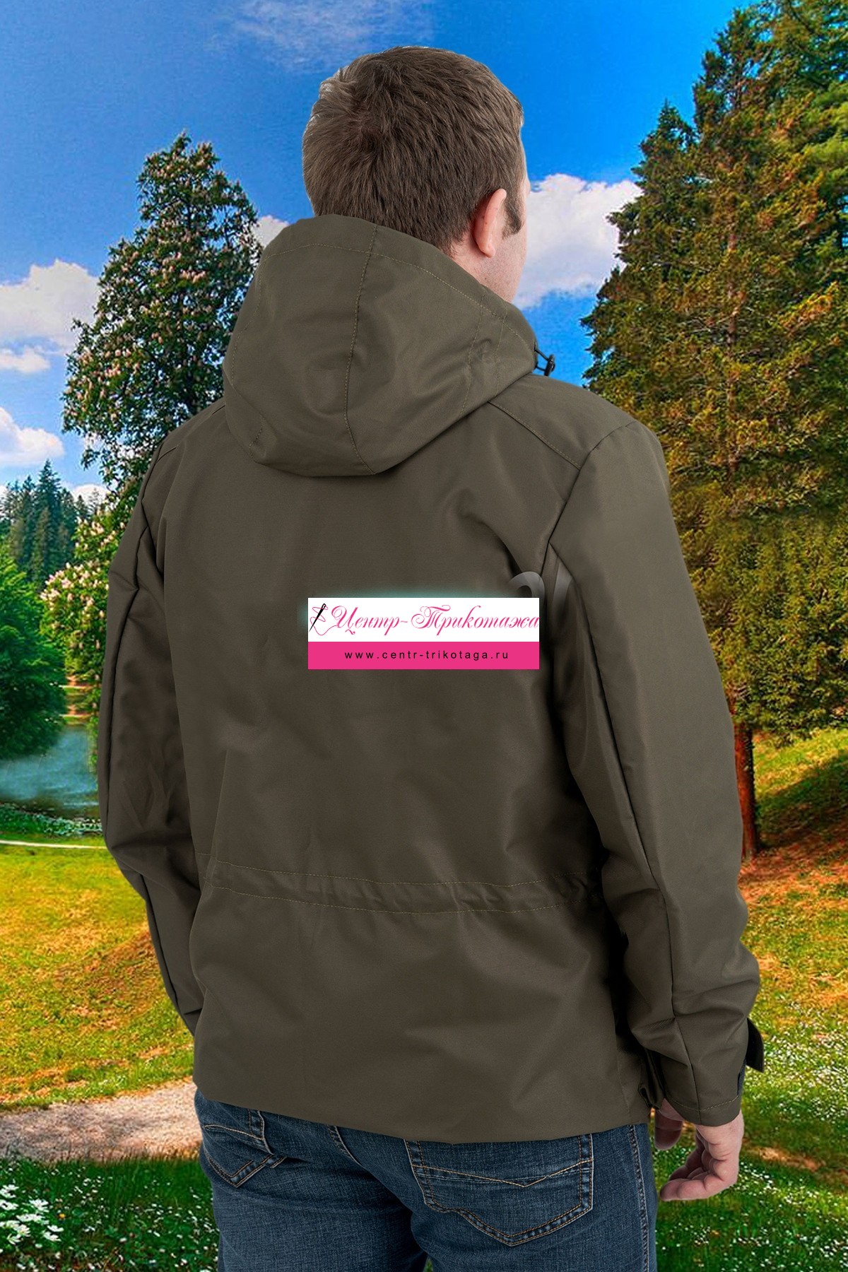 Куртка прямого силуэта с центральной застежкой на молнию, с ветрозащитным клапаном. Спинка цельнокроенная. Полочки с двумя прорезными карманами на молнии и двумя накладными объемными карманами с клапанами. Рукава втачные двухшовные, внизу ширина рукава регулируется патой. Воротник выполнен в виде стойки. Куртка с капюшоном, отстегивающимся на молнии, имеется кулиска по линии талии с утягивающим шнуром. Куртка застегивается на кнопки.