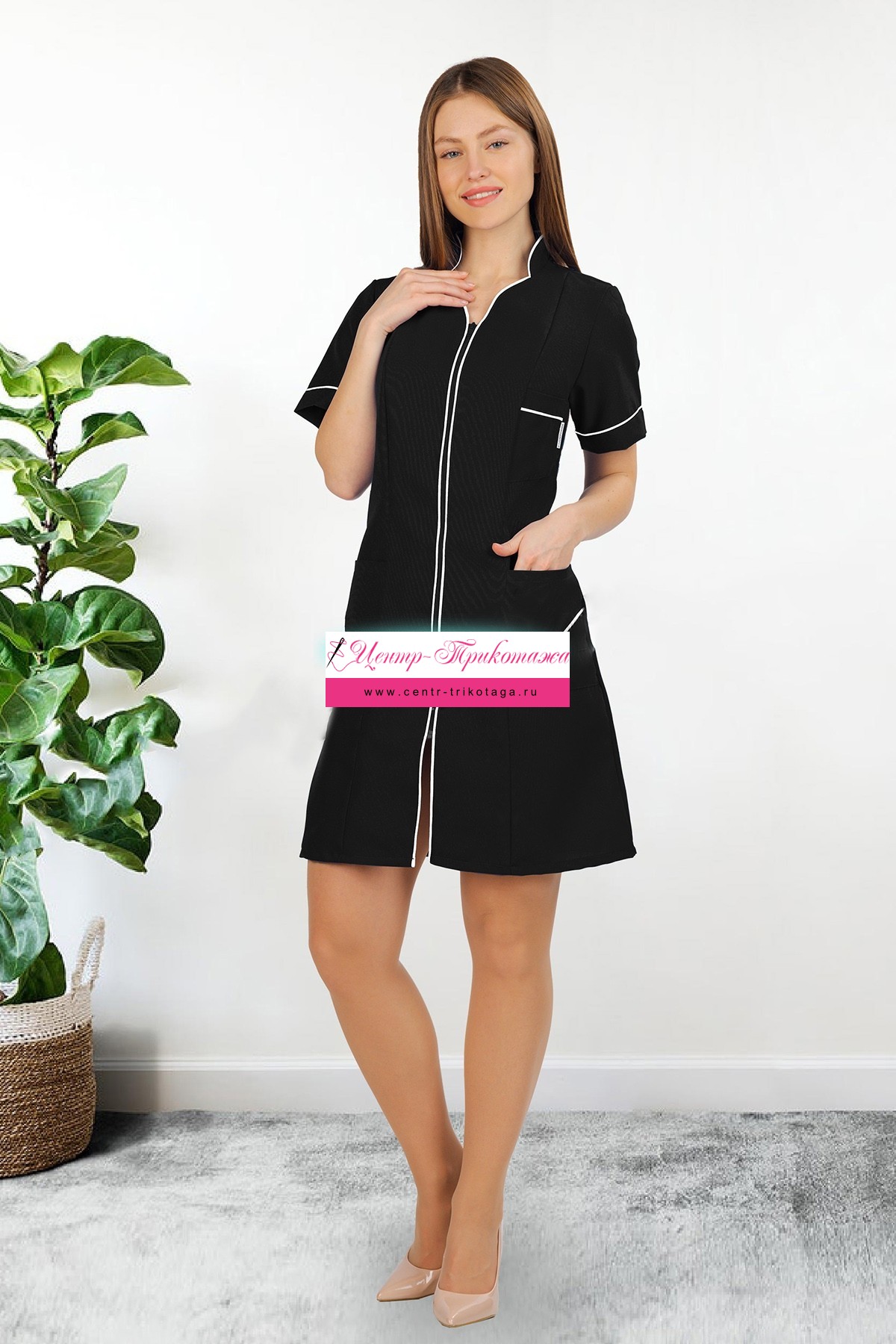 Халат женский арт. УН-20-04-ТС (чёрный/белый) №УФР-МЕД-588