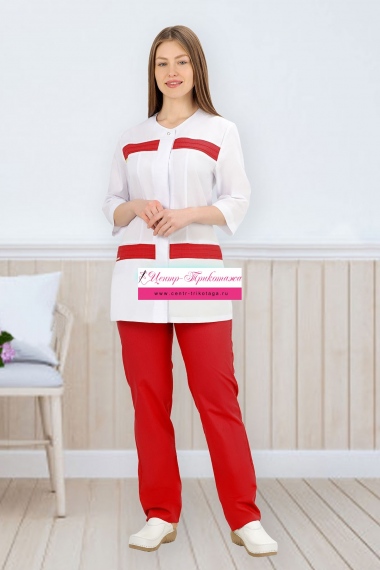 Костюм медицинский женский арт. М-02-73-ТС (белый/красный) №УФР-МЕД-47-2
