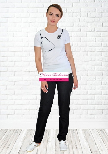 Костюм медицинский женский "Стетоскоп" из креативной коллекции "Medical Style" состоит из футболки и брюк.