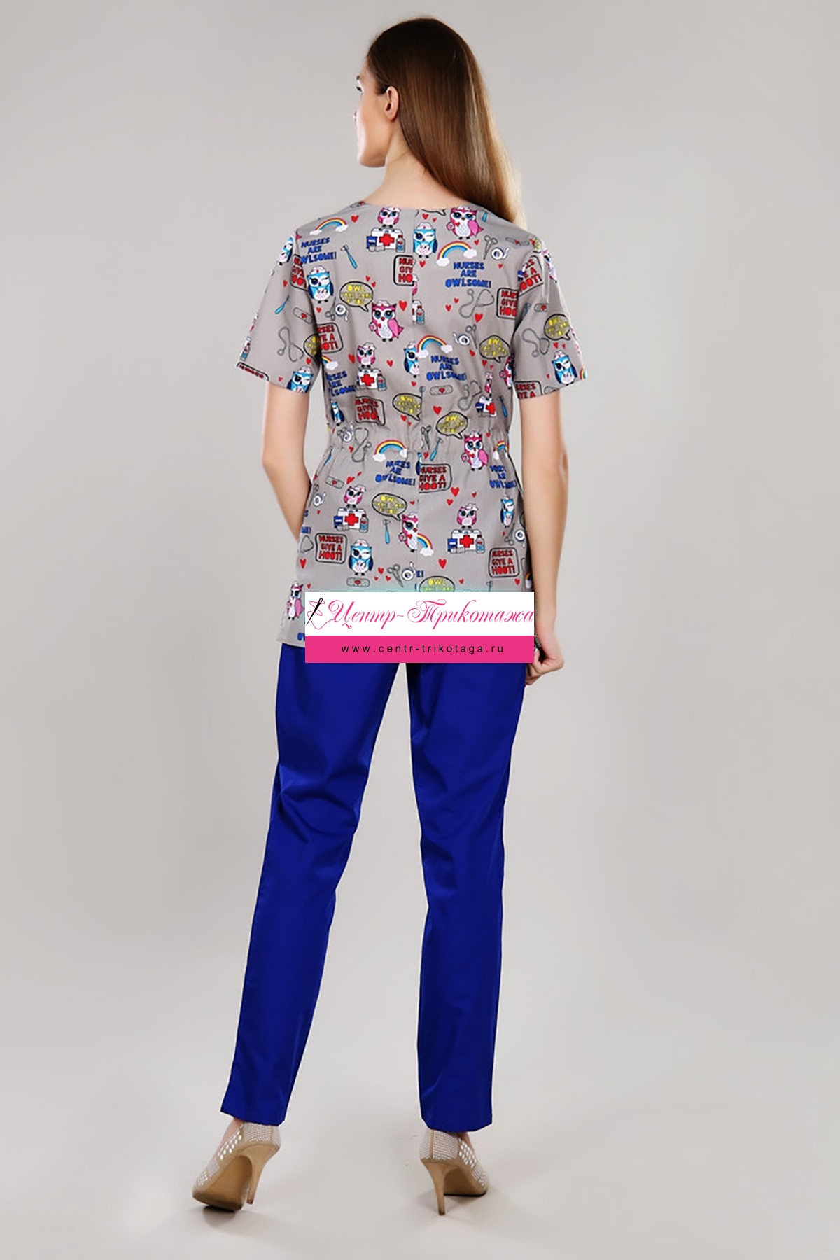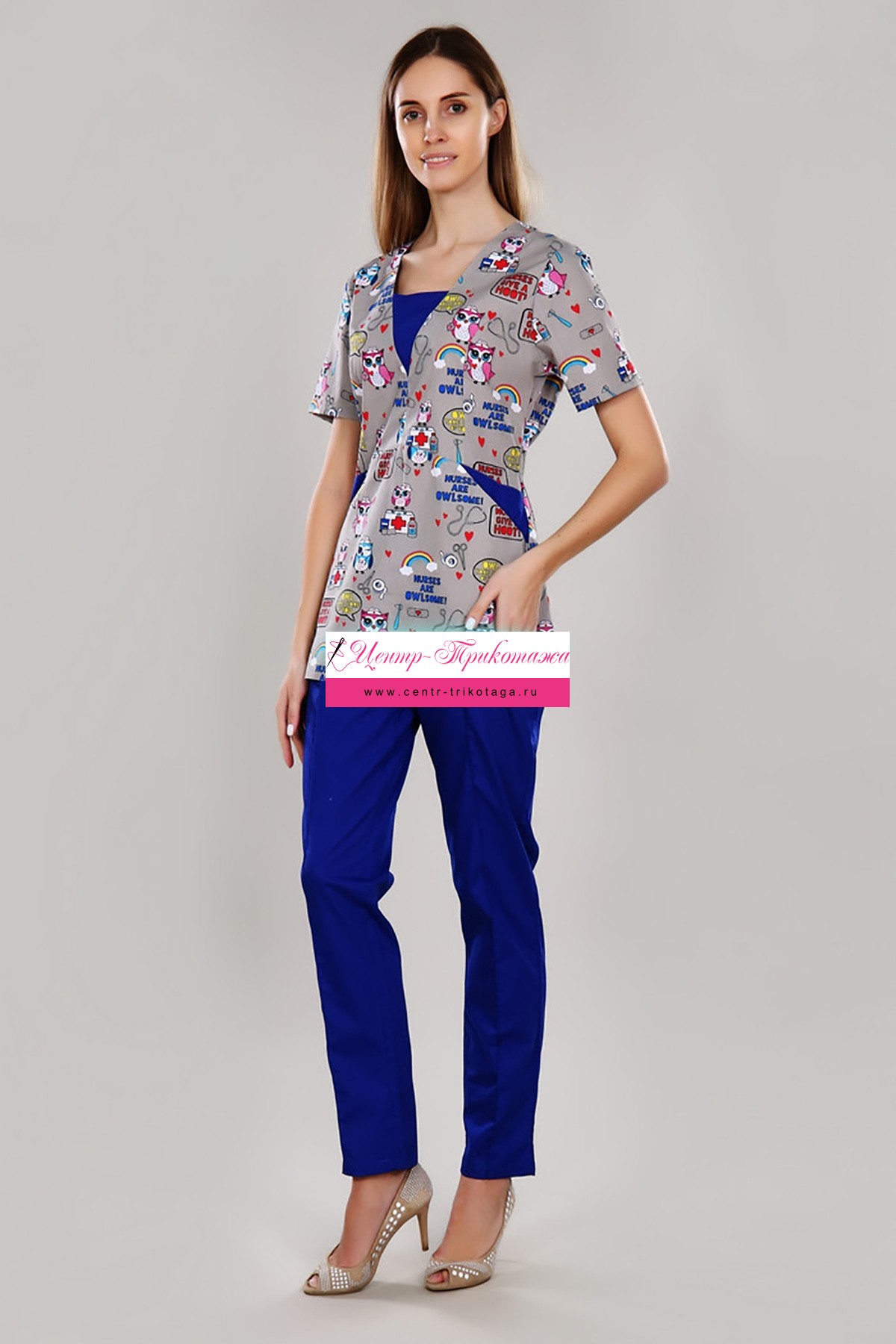 Костюм медицинский женский ткань Тиси (серый/василек) №ИМ-М-111П-3