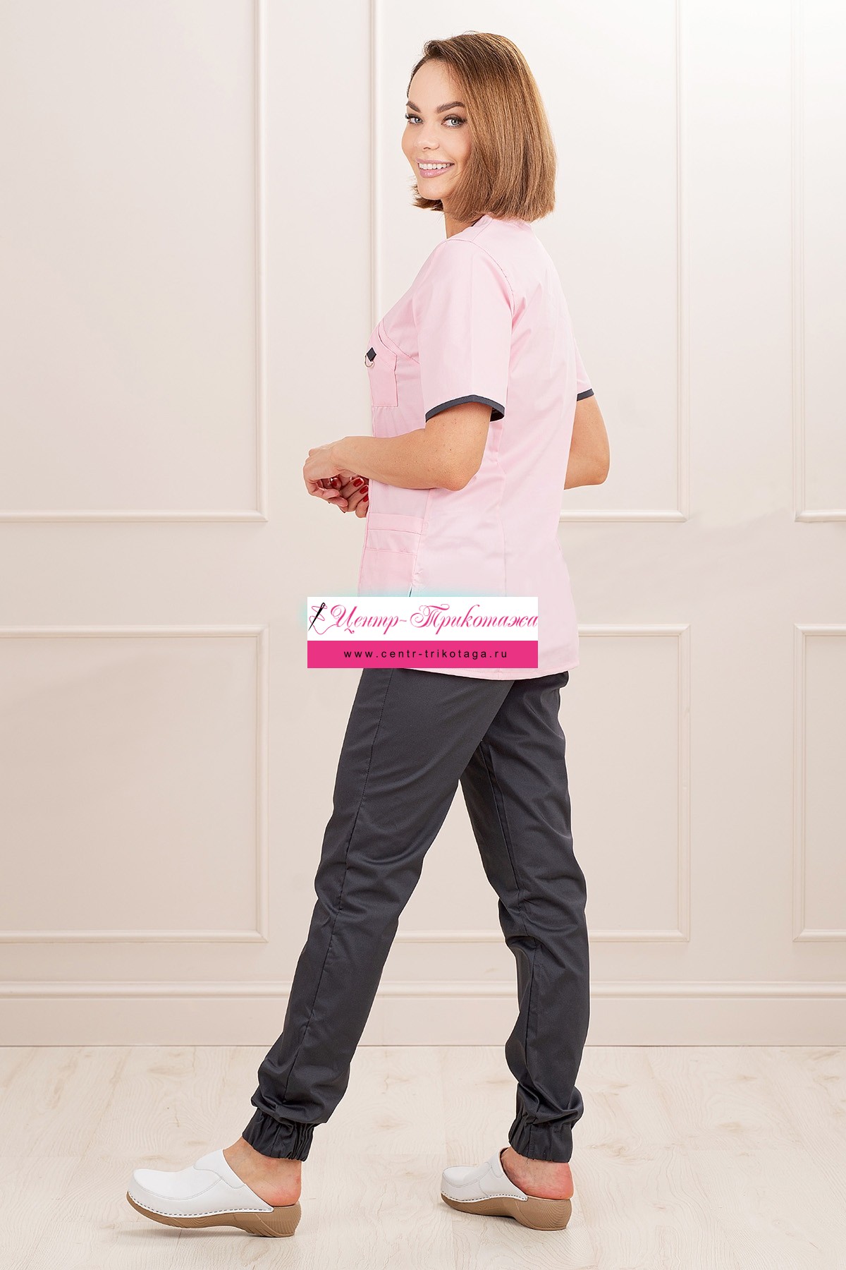 Костюм медицинский женский арт. М-02-52-СТР (серый/розовый) №УФР-МЕД-692