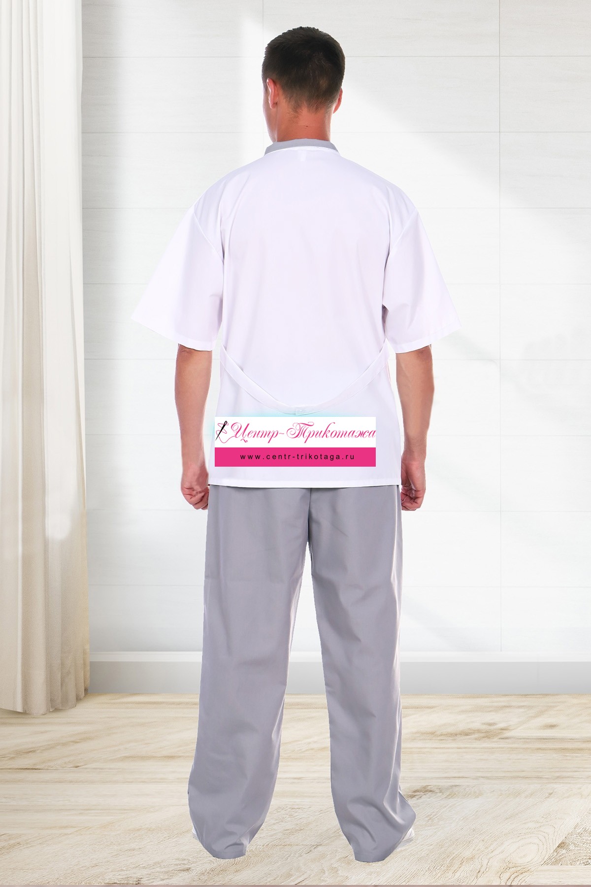Костюм медицинский мужской арт. М-02-88-ТС (белый/серый) №УФР-МЕД-835