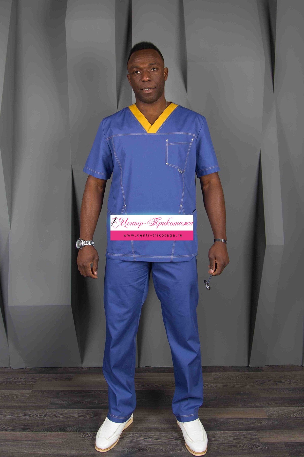 Костюм медицинский мужской ткань Тиси (с.синий/горчичный) №ИМ-М-171-1