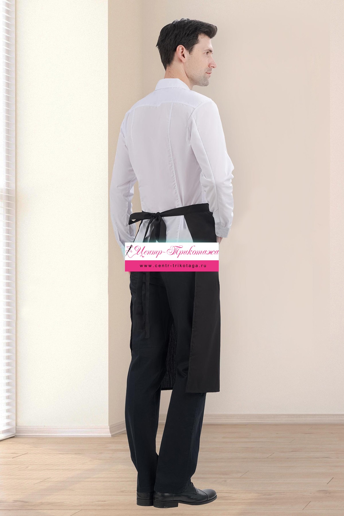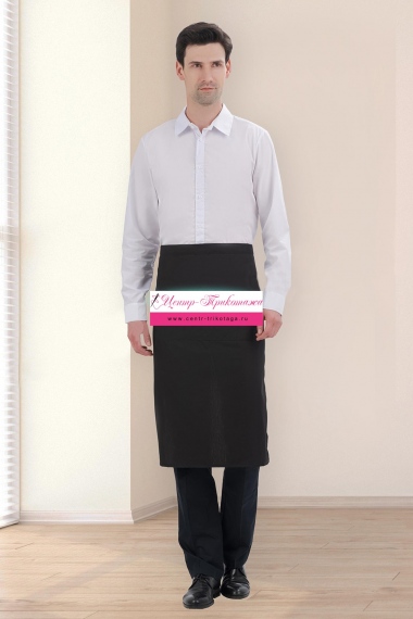 Фартук официанта мужской, длинной до колена, с передним карманом, разделенным строчкой на две части.