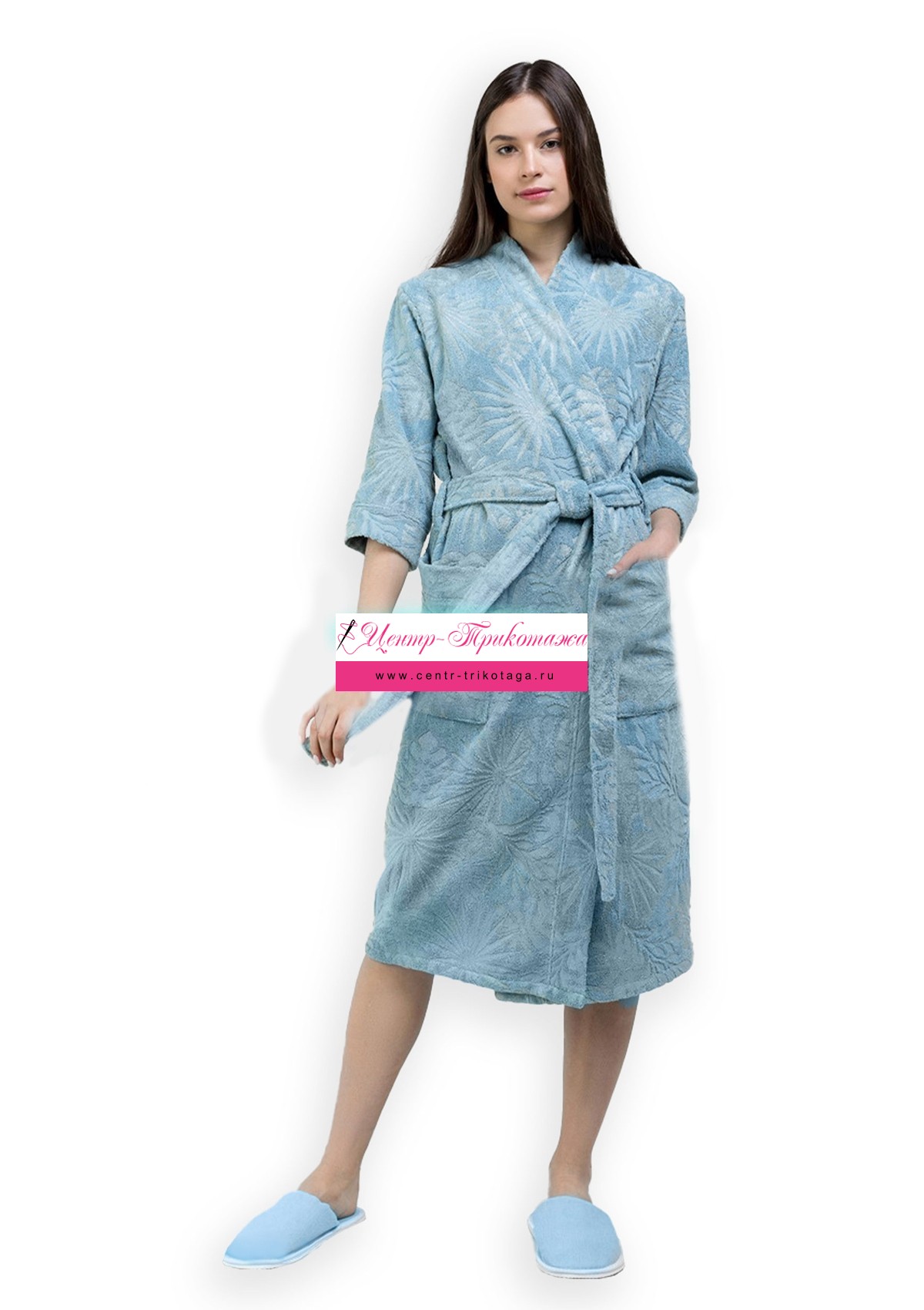 Уютный женский махровый халат с очень мягким невысоким ворсом и красивым жаккардовым рисунком. Халат хорошо сохраняет тепло, воздухопроницаемый, гигиеничный, износоустойчивый. Облику каждой женщины эта модель придаст королевскую роскошь, а также подарит приятную мягкость и теплоту.