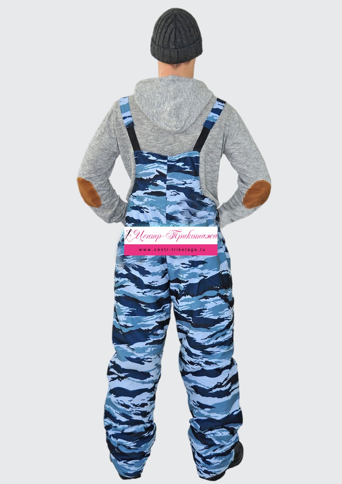 Костюм состоит из куртки и полукомбинезона. Куртка мужская с центральной бортовой застежкой на молнии. Молния закрыта притачным клапаном. Воротник отложной. Предусмотрен съемный воротник из искусственного меха. Капюшон съемный, по лицевому вырезу стягивается шнуром. Низ куртки с притачным поясом, стянутым по бокам эластичной лентой. На полочке: два нагрудных накладных кармана с клапанами, застегивающимися на кнопки, один накладной карман с застежкой на молнии, два нижних прорезных кармана с настрочной листочкой. Рукав на манжете, стянутой эластичной лентой. На левом рукаве накладной карман, застегивающийся на молнию. В швы соединения рукавов с проймами, в области плеча, втачены погоны, застегивающиеся на кнопки. Полукомбинезон с центральной застежкой на молнии. Спинка по талии стянута эластичной лентой. Длина бретелей регулируется цупферными замками. На полукомбинезоне два нагрудных накладных кармана с клапанами, застегивающимися на кнопки и два нижних накладных кармана.