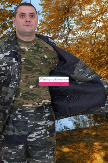 Ветровлагозащитный костюм для охоты и рыбалки состоит из куртки и брюк. Куртка с центральной застежкой на молнию, верхними и нижними накладными карманами с клапанами. Манжеты и низ куртки выполнены на эластичной резинке. Брюки прямые имеют два боковых накладных кармана с клапанами и два кармана с боковым входом под листочку. Пояс на эластичной тесьме. Низ брюк регулируется по ширине шнуром с фиксатором.