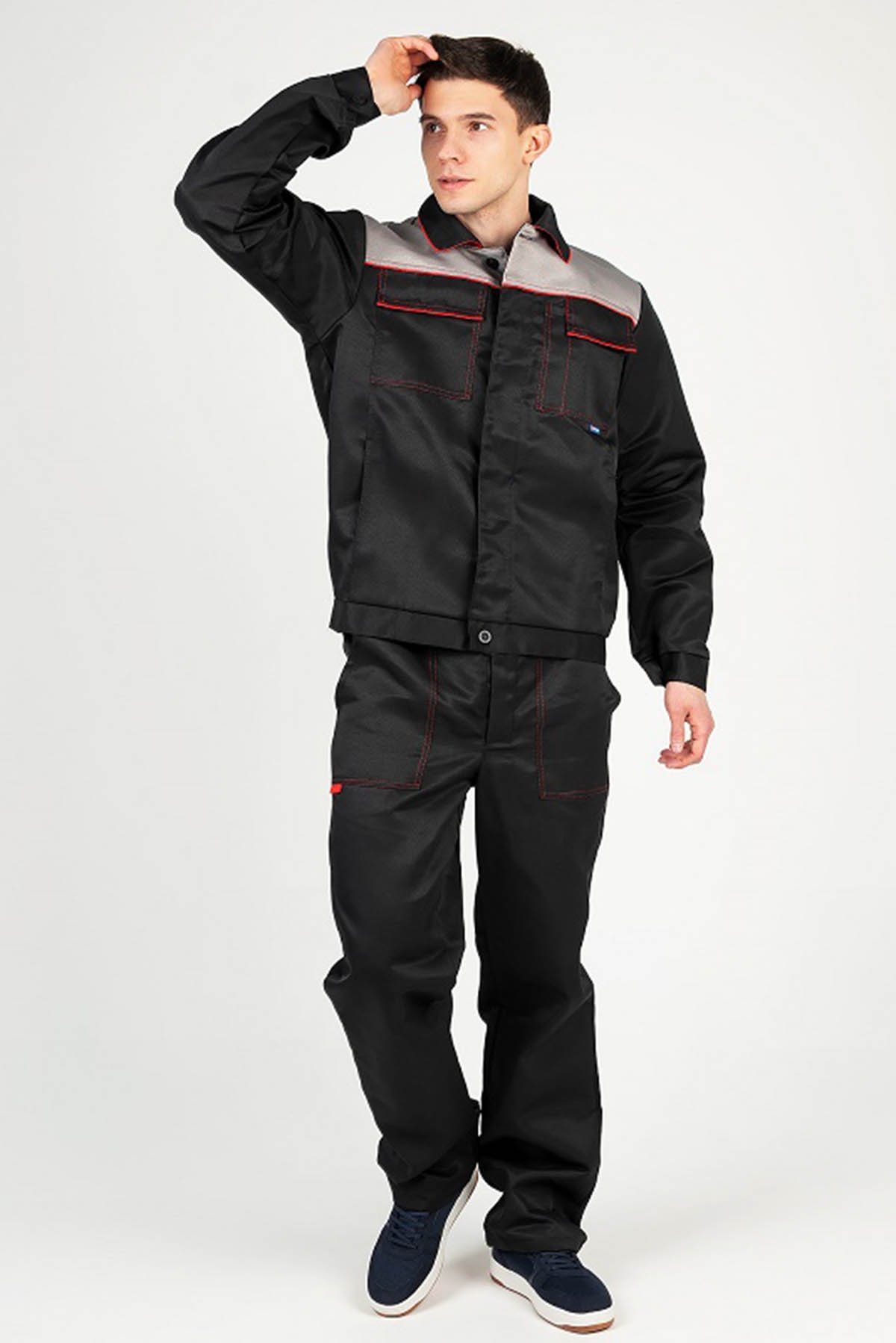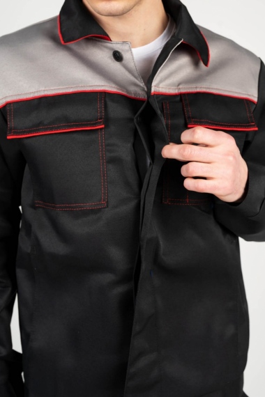 Костюм Бригадир-4 NEW Темп черный/серый/красный №БСР-30