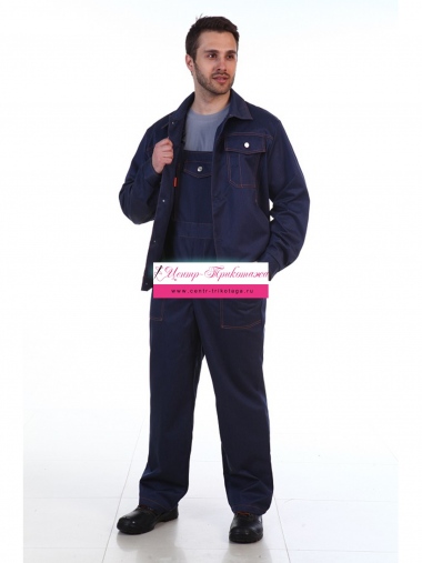 Костюм состоит из куртки и полукомбинезона. Куртка на поясе, с хлястиками для регулировки ширины, с центральной