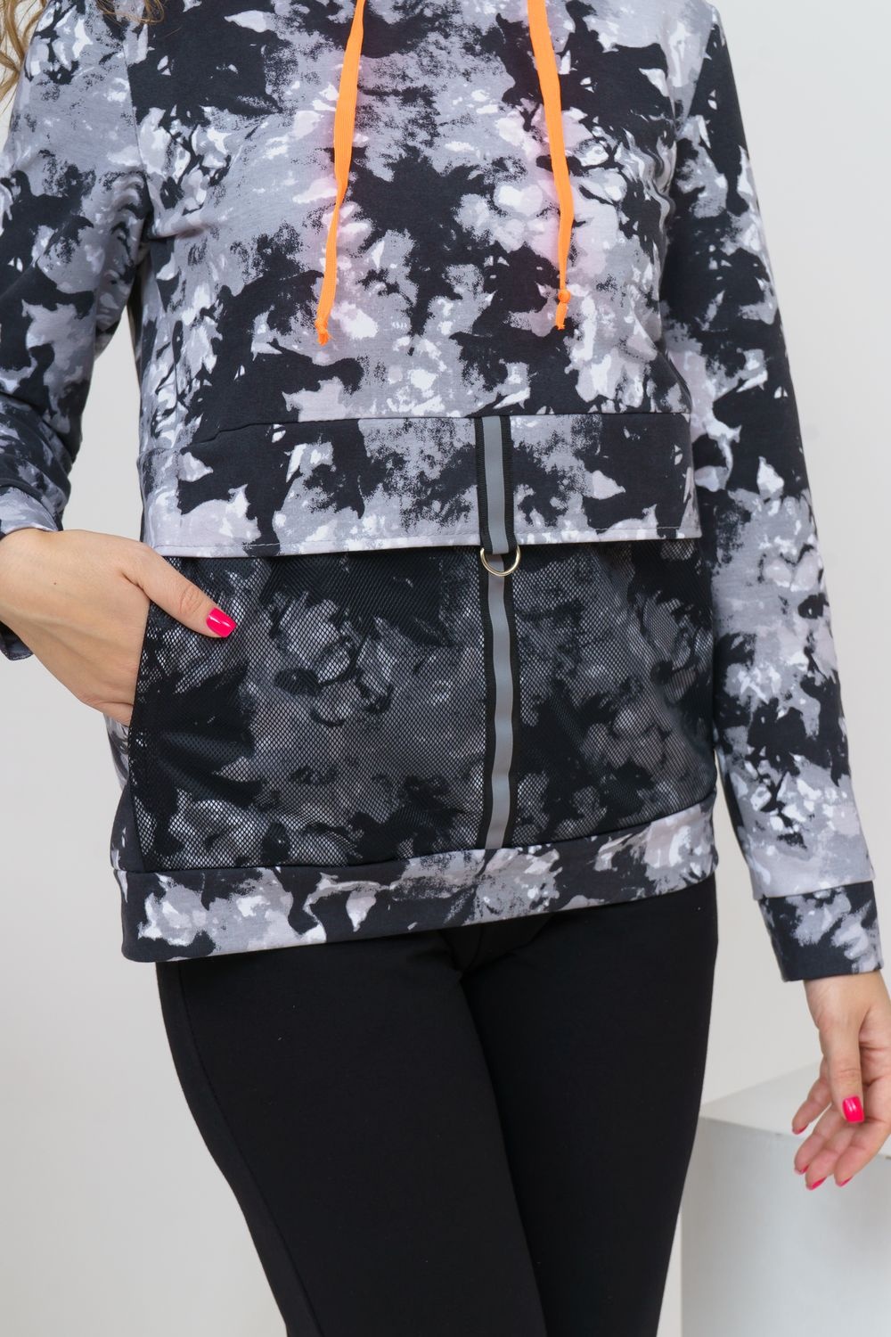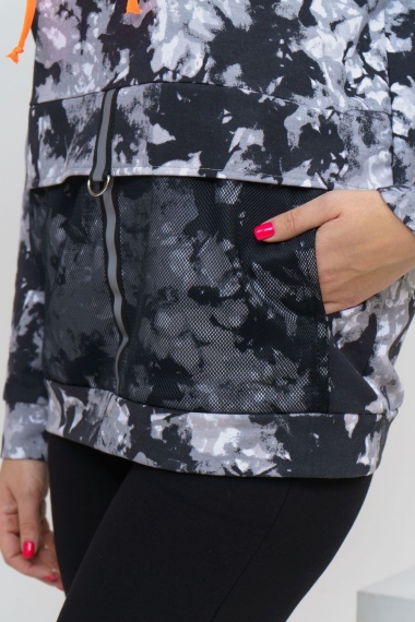 Модная стильная толстовка выполнена из футера с дизайном тай-дай. Капюшон дополнен люминесцентным шнурком и сеткой. На кармане и клапане настрочена светоотражающая лента с металлической фурнитурой, что делает толстовку не только модной, но и заметной в тёмное время суток, сохраняя Вашу безопасность. Стиль тай-дай стал выбором смелых и уверенных в себе людей, которые не хотят быть похожими на других. Данную модель можно приобрести с брюками - костюмом 36514.