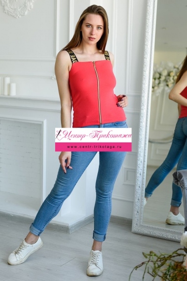 Топ женский из рибаны с лайкрой Love коралловый №А-07293