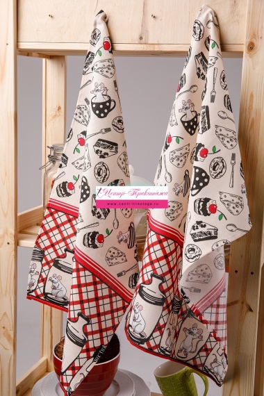Набор полотенец из 2-х штук "Мыши в банках, красные" №ПНН-9265-2-ПП