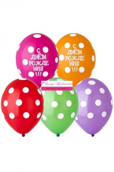 Набор шаров латексных "С Днем Рождения" (горошек) №ВЗ-1111-0806