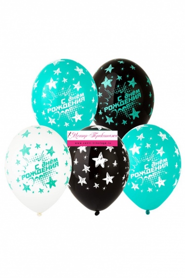 Шар латексный "ДР Звезды бирюз" №ВЗ-1103-1767