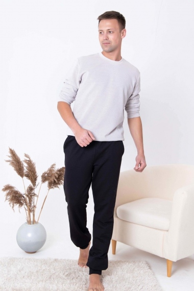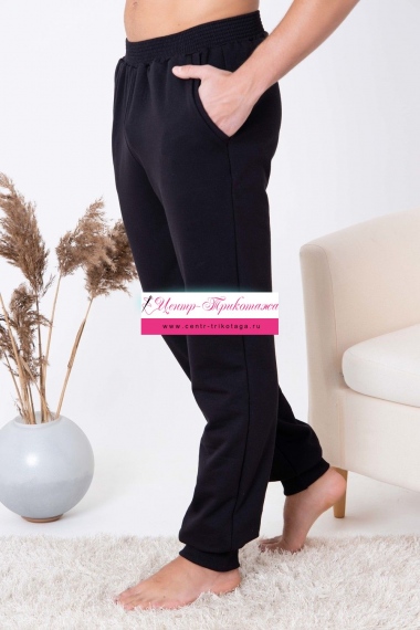 Мужское трико из футера с начесом. Пояс на резинке, по бокам имеются карманы, однотонная черная расцветка, прямой покрой. Возможно под брендом Натали.