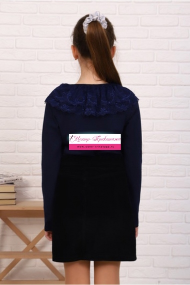 Джемпер для девочки "Флора" (длинный рукав, темно-синий) №МРЛ-ДЖ.3021-2