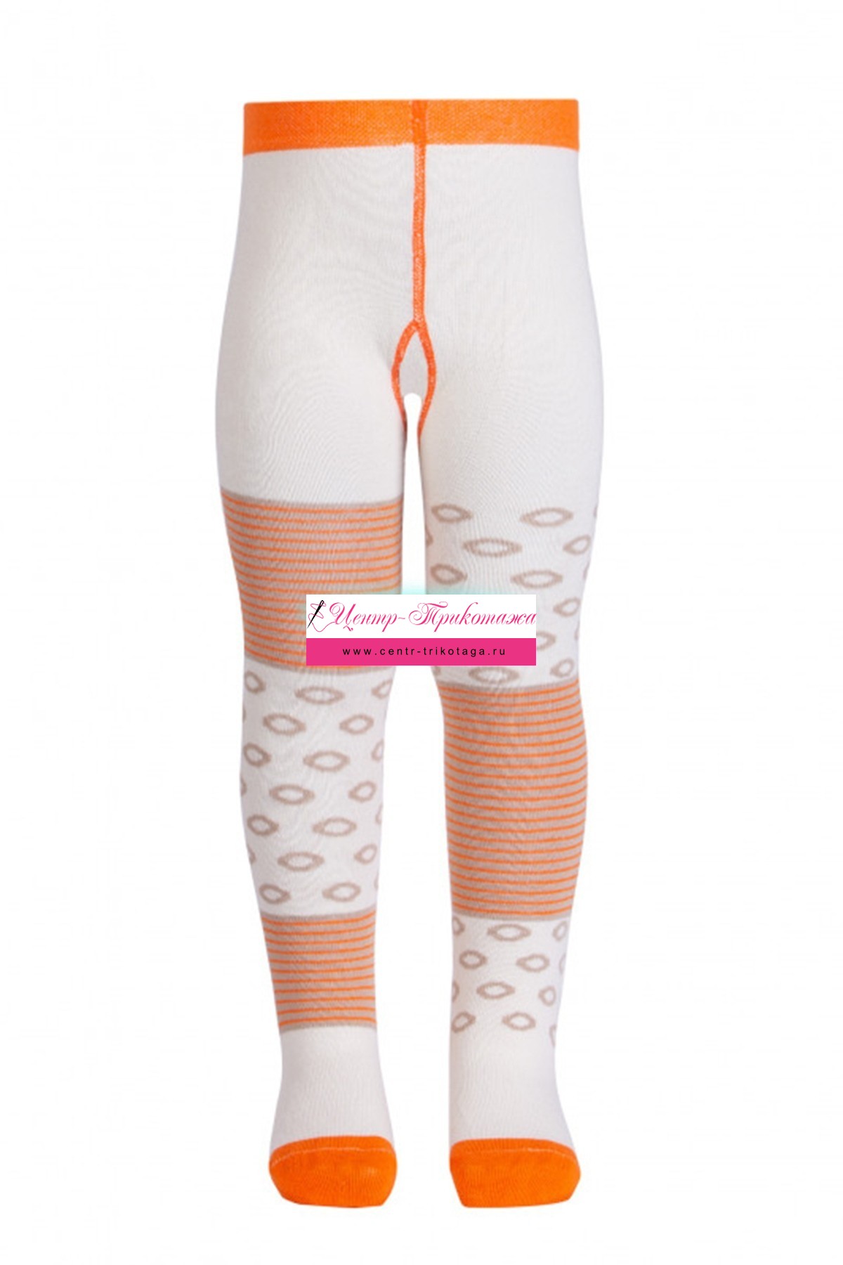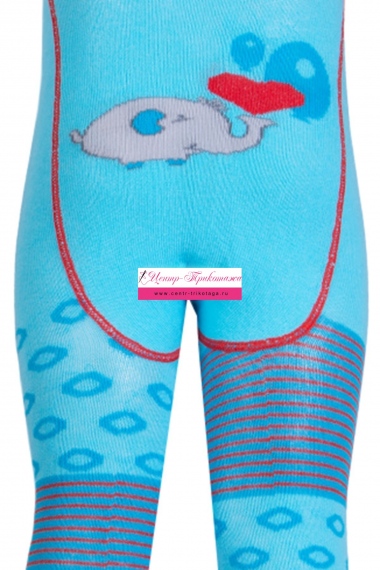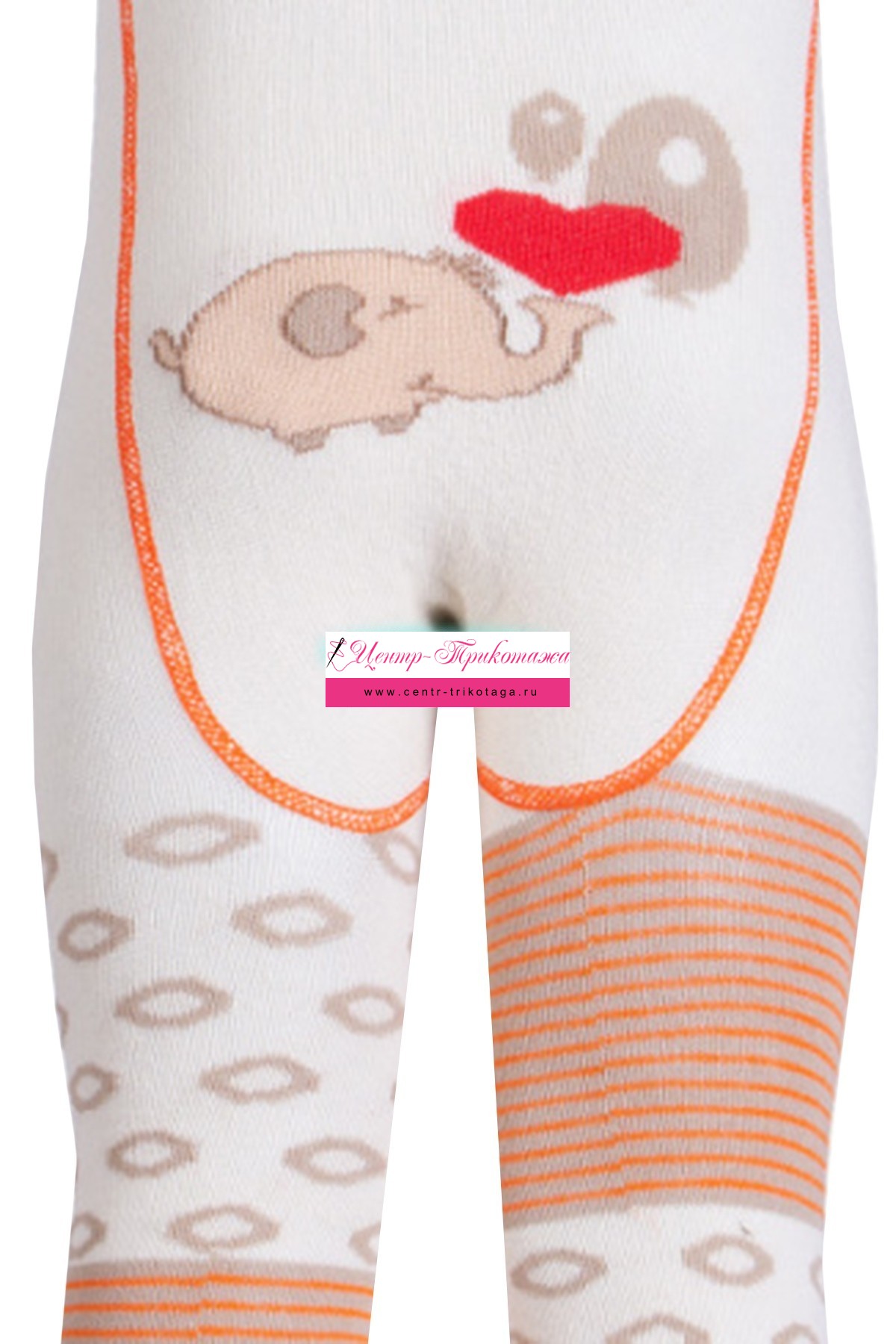 Демисезонные детские колготки из хлопка с компьютерным рисунком «Слоник» на ластовице и необычным симметричным распределением рисунка (полоски, кружочки) по всей длине ножки.