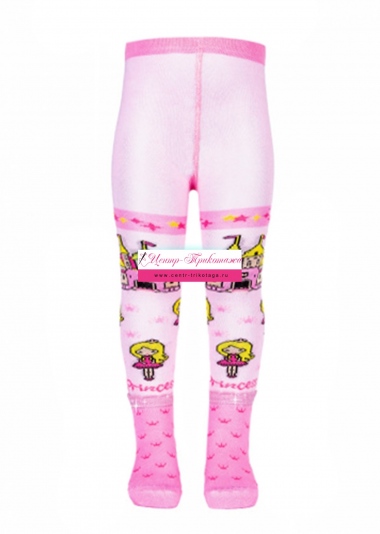 Детские демисезонные колготки для девочки. Изюминка данной модели - это оригинальный переход из носочек в колготки с использованием нити люрекс в декоративной отделки рельефного борта, рисунок очаровательной принцессы дополняет образ.