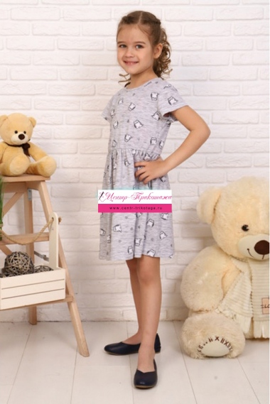 Платье для девочки "Лапуля" (кор. рукав, светло-серый) №МРЛ-ПЛ.1143