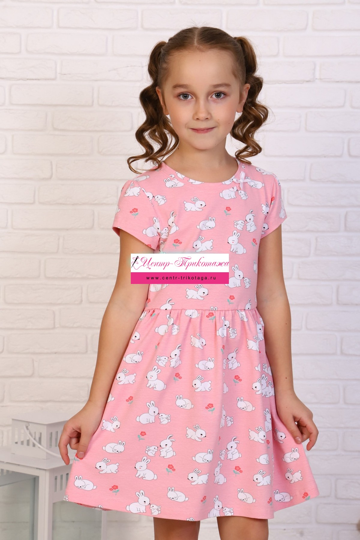 Платье на девочку "Белый хвостик" (розовый, короткий рукав) №МРЛ-ПЛ.0196