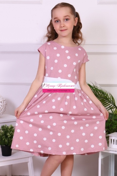 Платье на девочку "Юла" (горох на лиловом, короткий рукав) №МРЛ-ПЛ.0151-1