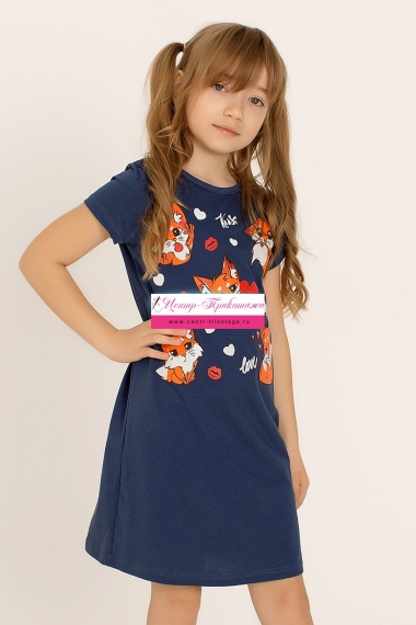 Сорочка детская "Мультяшки" (тёмно-синий) №ФТ-ДК230ТС