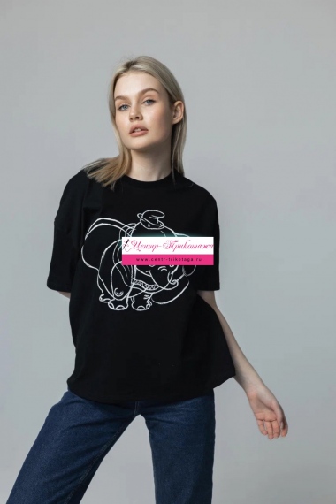 Футболка женская "Слон" (оверсайз,черный) №ЛБ-СФ-10