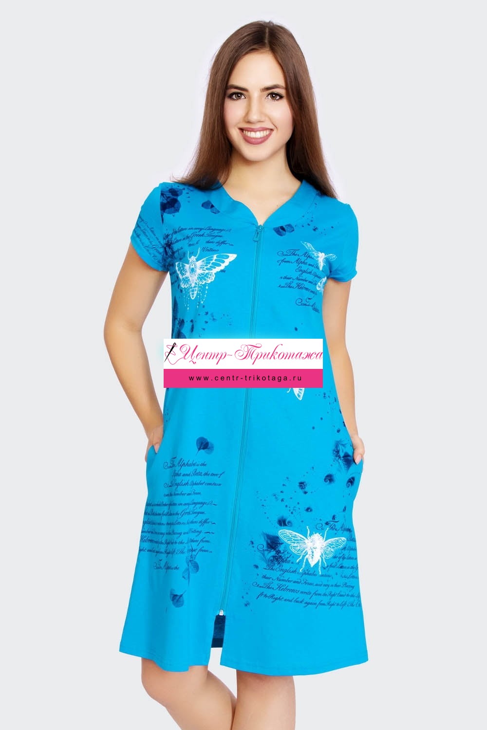 Халат "Брошка" (кулирка, бирюзовый) №М-Х-004-1