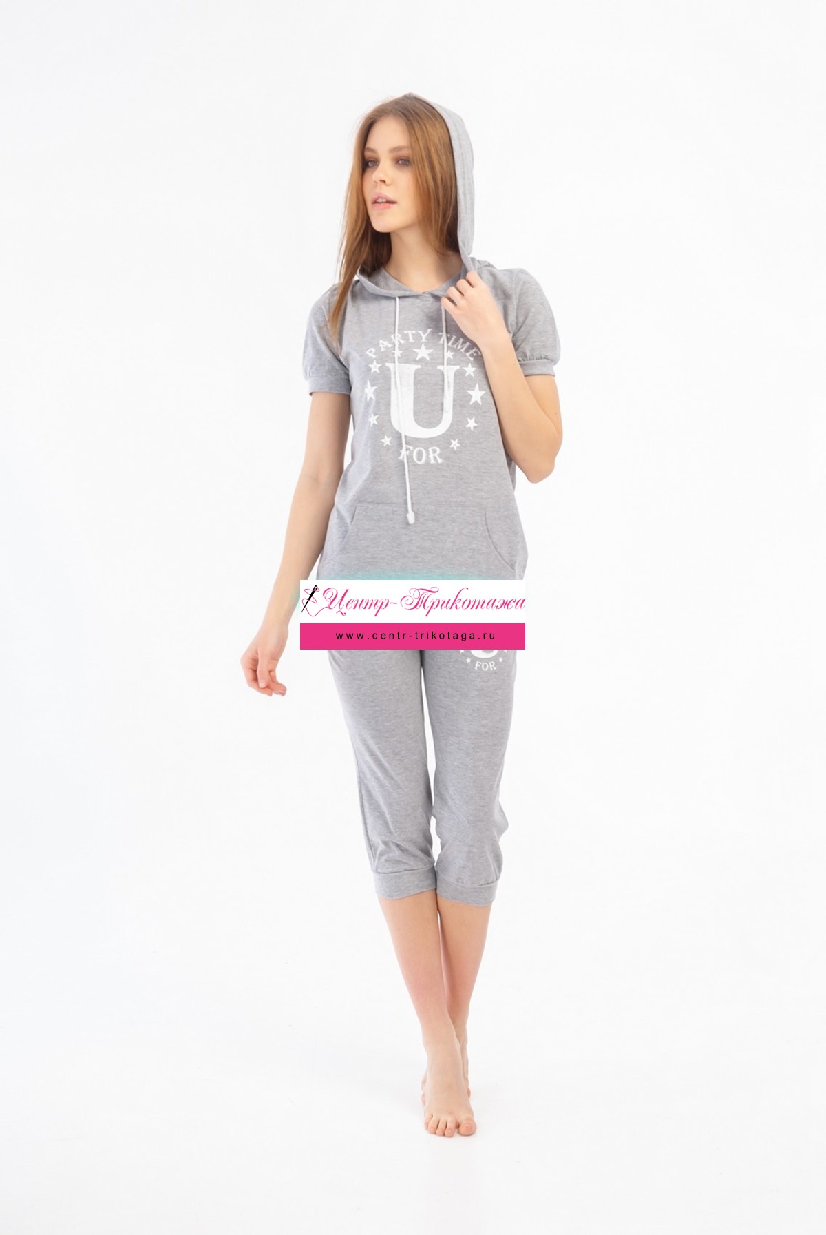 Домашний костюм "Пати" (бриджи, серый) №ЛБ-79-1