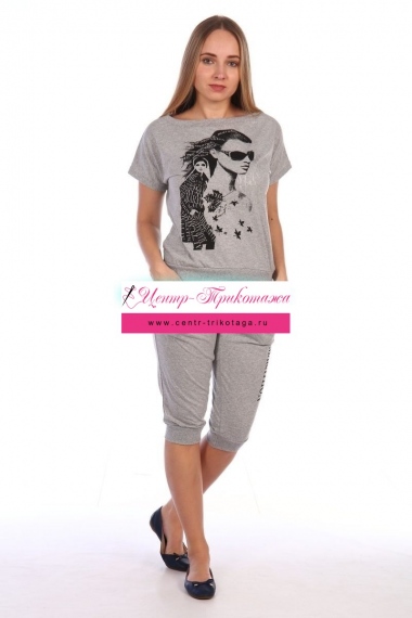 Костюм футболка+бриджи "Девушка" (серый) №КД233-1