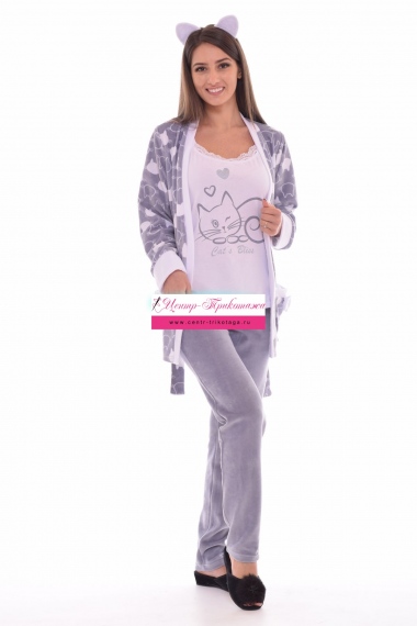 Состав: брюки, халат - 80% хлопок, 20% полиэстер; топ - 100% хлопок.