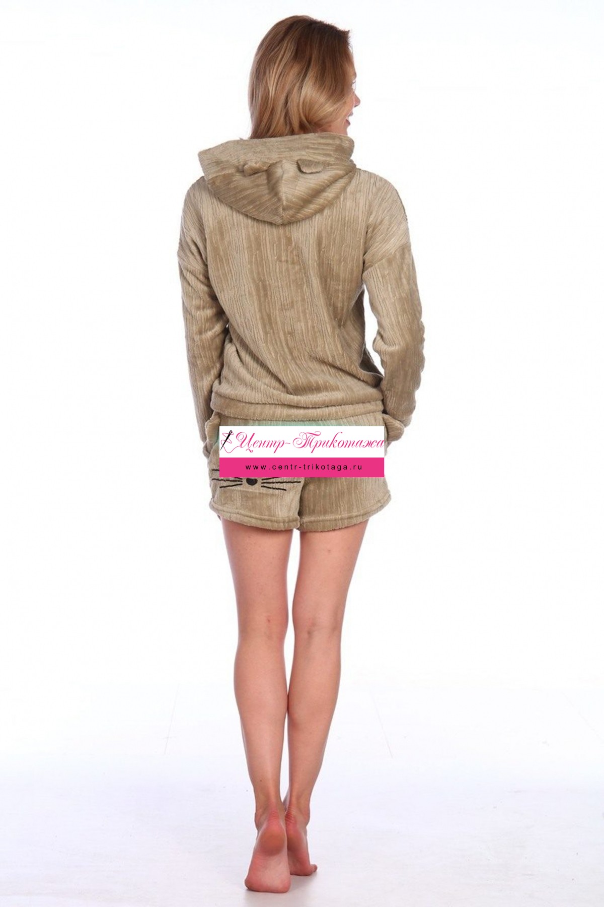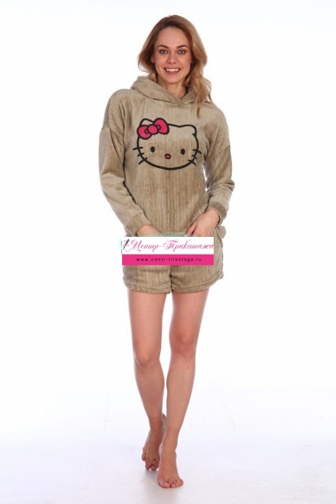 Костюм "Kitty" (хаки, кофта с капюшоном+шорты) №370-4