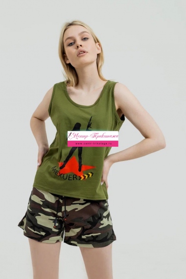 Костюм женский "Милитари" (шорты, зелёный) №ЛБ-МШК-10-1