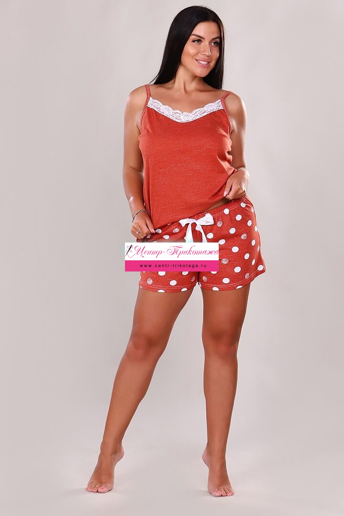 Пижама "Агат" (топ+шорты в горох, терракот) №902-2