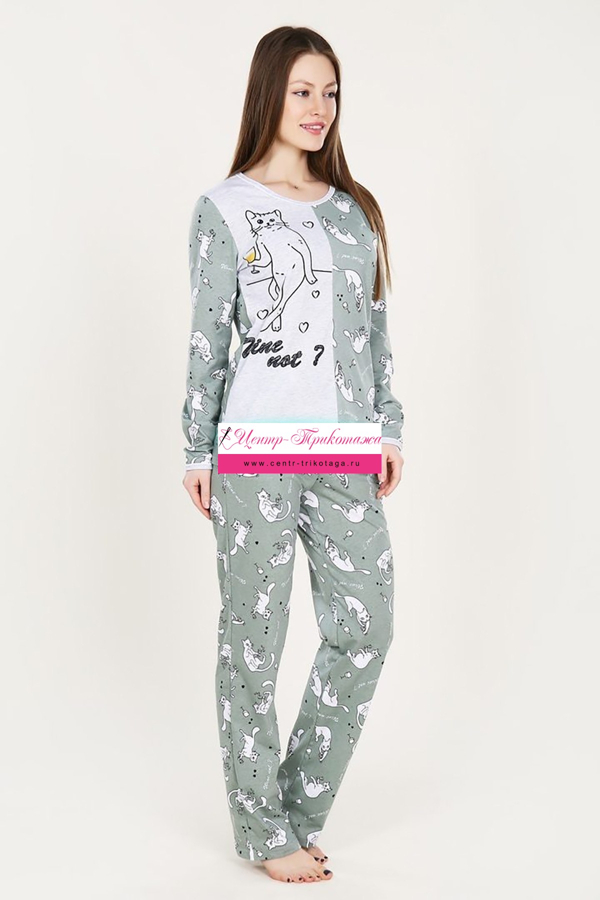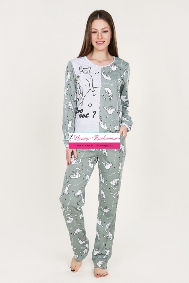 Пижама фуфайка+брюки Mr. Кот (хаки) №904