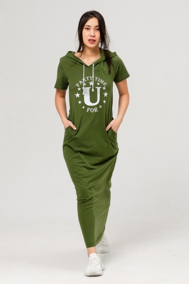 Платье женское "Пати" (капюшон, хаки) №ЛБ-ПЛ-17-2