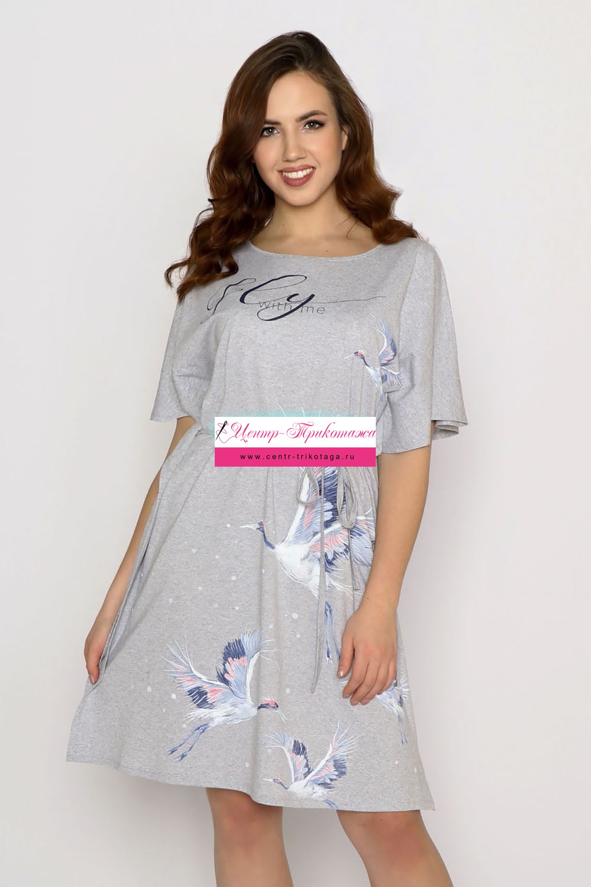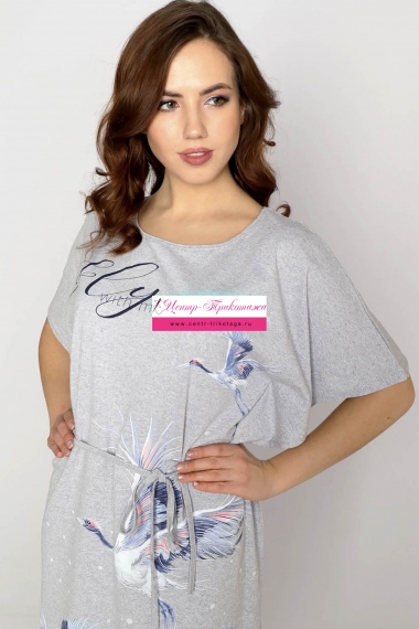 Платье "Журавли" (серый меланж) №М-П-05173-1