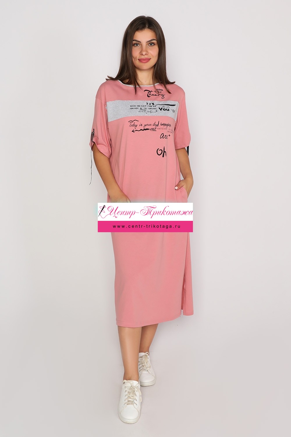 Платье "Теория" (пудровый/серый меланж ) №М-П-0712