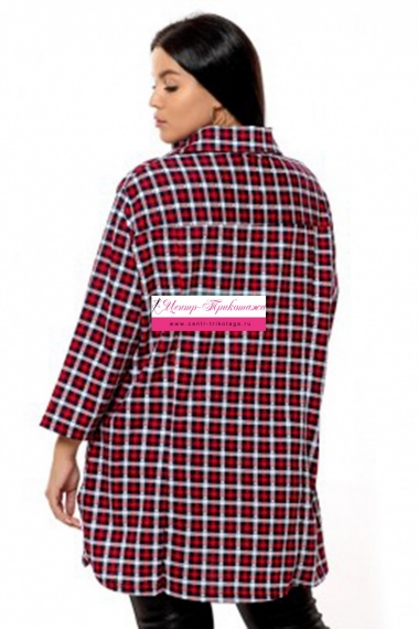 Модель приталена рельефами на спинке и полочке; отрезные кокетки на спинке и полочке; воротник рубашечный на стойке; в боковых швах глубокие разрезы.