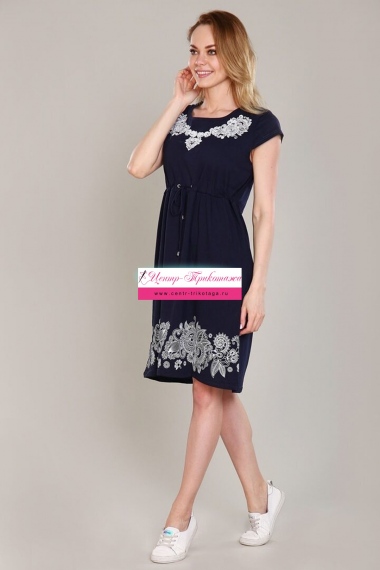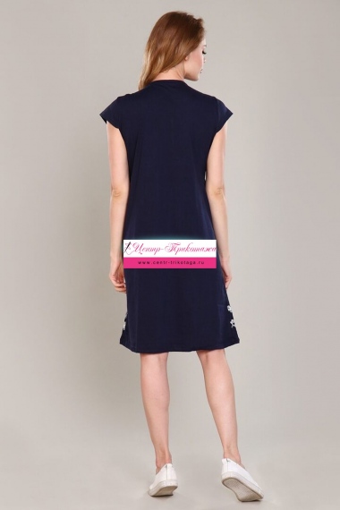 Платье-туника из хлопка с кулиской на талии (темно-синий) №147К
