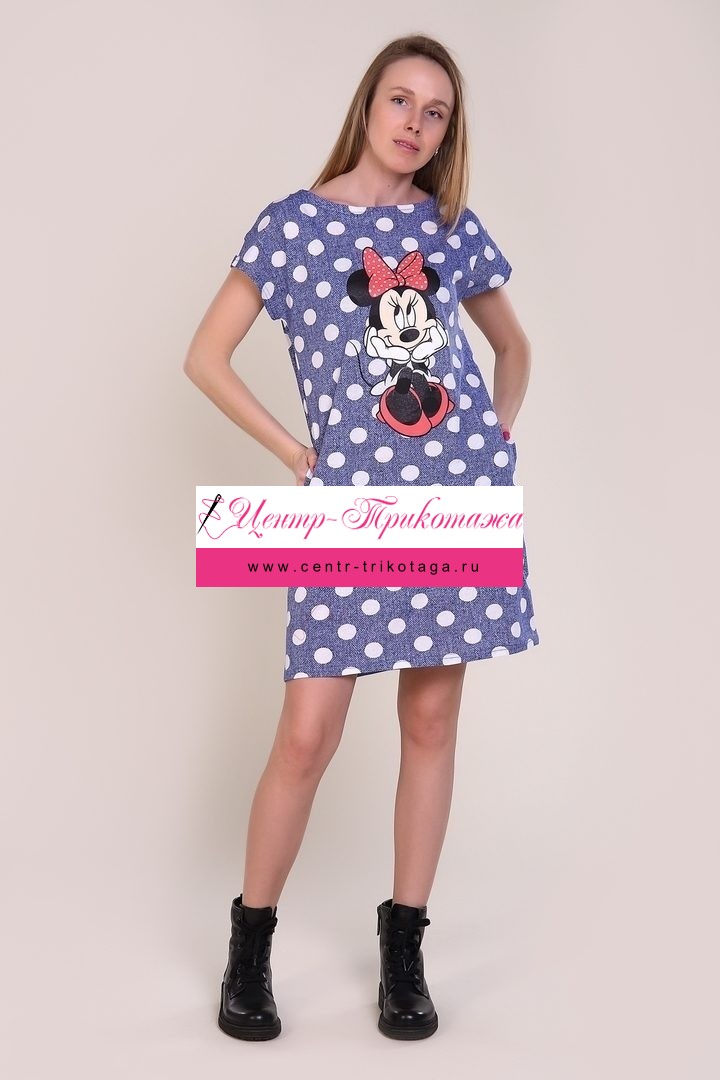 Туника из хлопка в горох "Минни" (джинса) №М-325