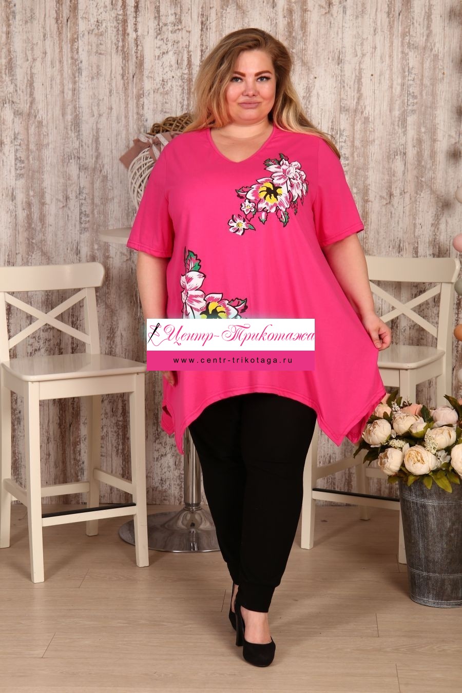 Изделие свободного покроя, сильно расклешенное внизу; низ изделия фигурный, вырез горловины V-образный, рукав короткий.