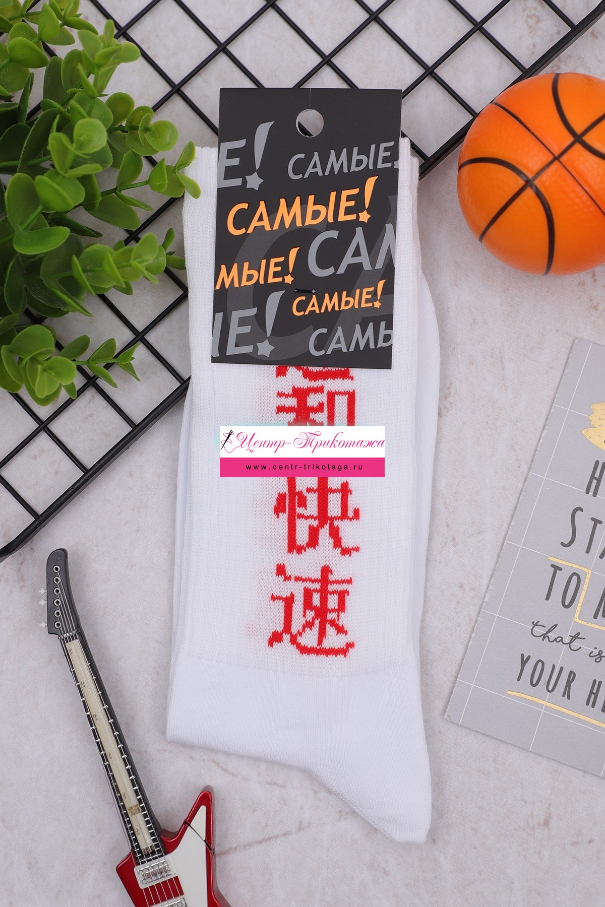 Стильные демисезонные мужские носки с высокой резинкой в спортивном стиле и оригинальным использованием в рисунке иероглифов, обозначающих «Быстрый и Стремительный» , что добавит в Ваш образ индивидуальность и уверенность.